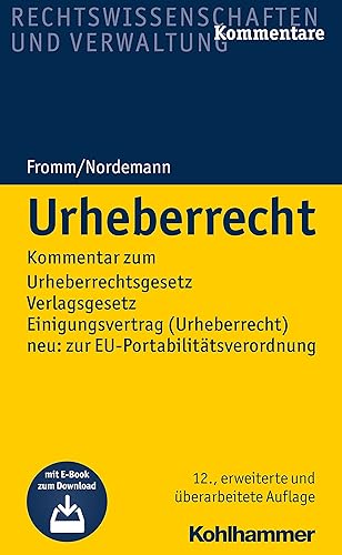 Urheberrecht: Kommentar Zum Urheberrechtsgesetz ~ Pris: 2576 kr. inbunden, 2018. Skickas inom 1-4 vardagar. Köp boken Urheberrecht: Kommentar Zum Urheberrechtsgesetz, Verlagsgesetz, Einigungsvertrag (Urheberrecht), Neu: Zur Eu-Portabilitatsverordnung (ISBN 9783170344068) hos Adlibris. Fri frakt. Alltid bra priser och snabb leverans. / Adlibris